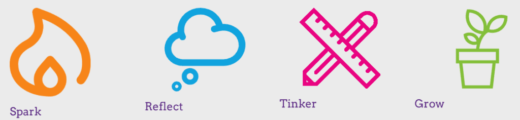 Because many teachers engage in professional development over the summer when classes are not in session, the cycles do not assume teachers are actively implementing the plans they make in the Tinker stage or reflecting on classroom experience in Grow. Teachers are still expected to create detailed plans for implementation and consider what pieces of their plan they feel confident in and which pieces may require more work. After facilitating lessons in the unit, they can return to the Tinker and Grow areas of LINCspring to support ongoing growth and reflection.